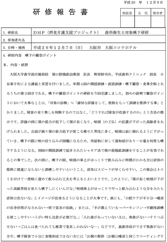 DHP(摂食介護支援プロジェクト) 歯科衛生士対象嚥下研修