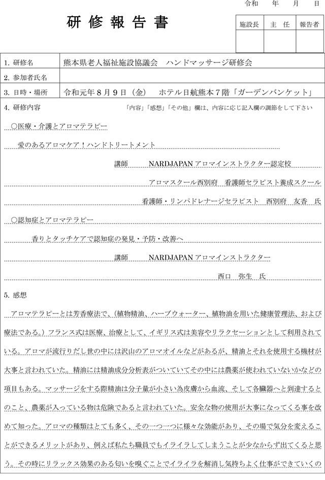 熊本県老人福祉施設協議会 ハンドマッサージ研修会
