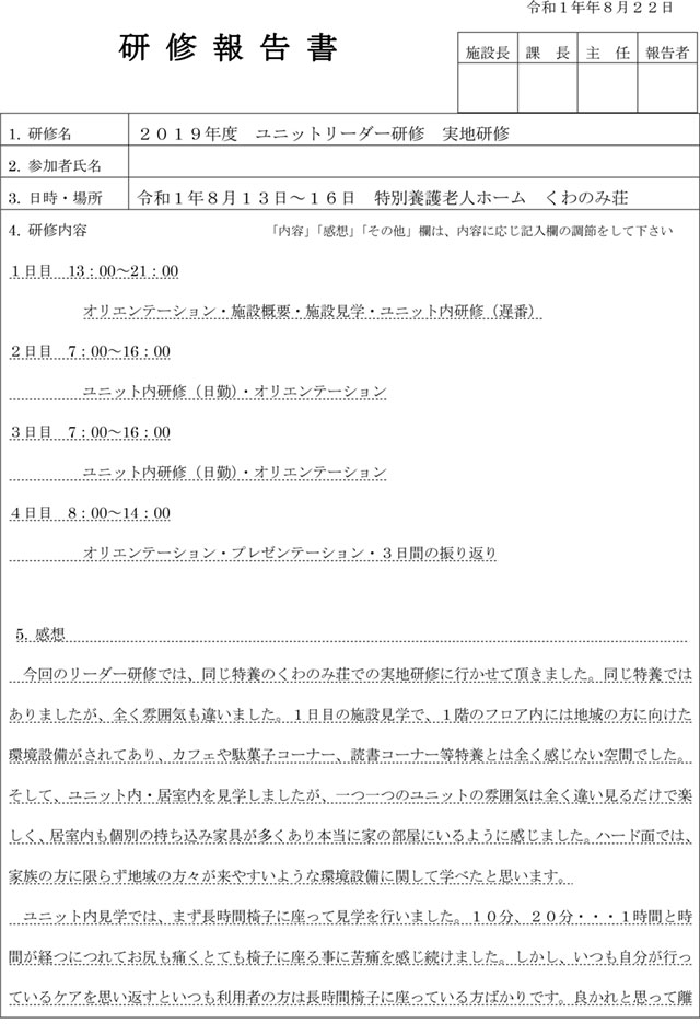 2019年度 ユニットリーダー研修 実地研修