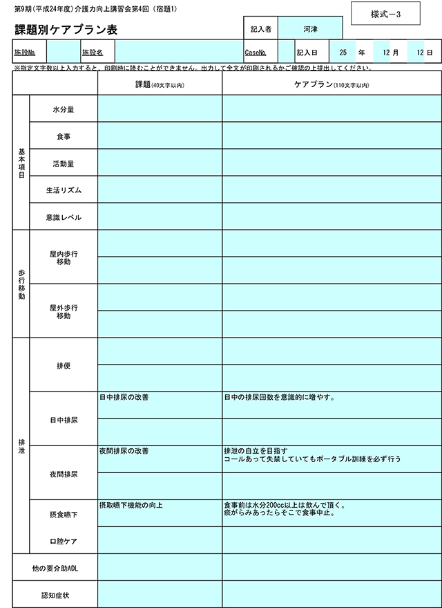 8月1日様式2・3のアセスメント実施後に課題別にプランを立てる。